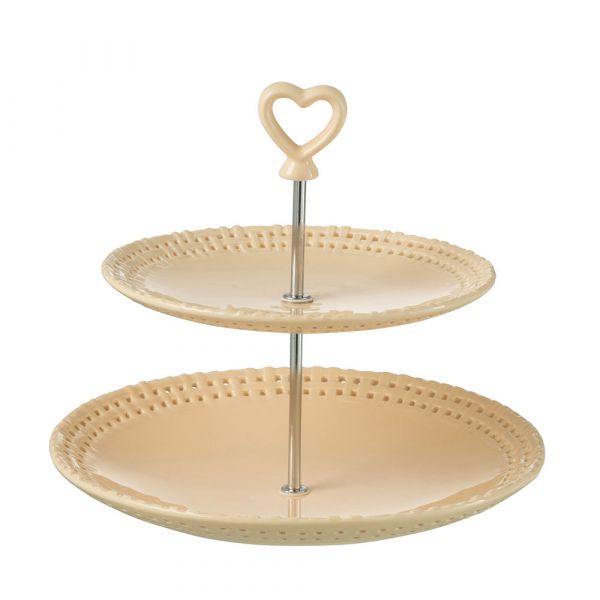 Alzatina a due livelli adatta per servire dei muffin o altri dolcetti, realizzata in ceramica di colore Pesca.